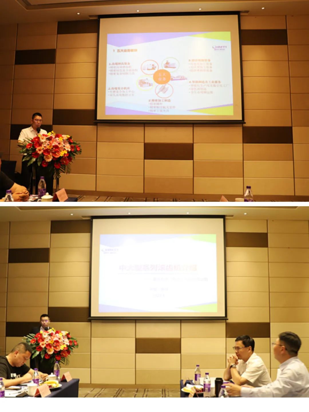 会议期间,公司两位技术专家分别作了题为《主导产品技术介绍》《中大型系列滚齿机介绍》的报告,全面介绍了公司齿轮机床、复合机床及绿色制造装备等各个板块主导产品;对加工直径在320mm以上规格的滚齿机,尤其是YD3180、YD31125、YD31200等大型滚齿机作了重点产品推介,并视频连线车间现场,向客户演示大型滚齿机在微量润滑状态下的切齿情况。